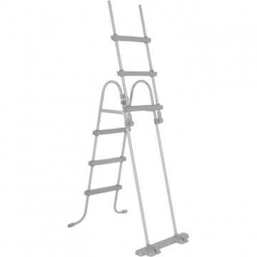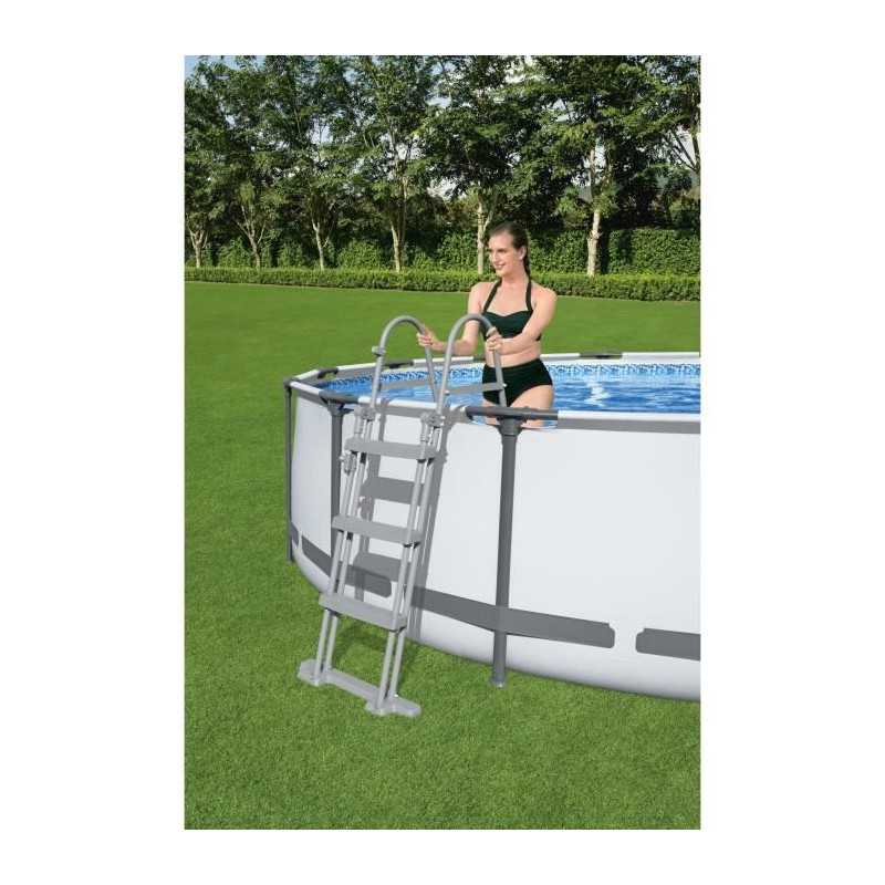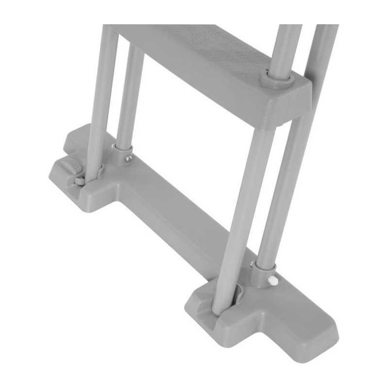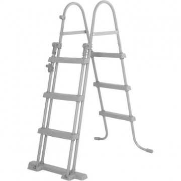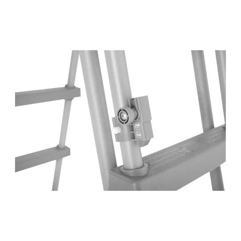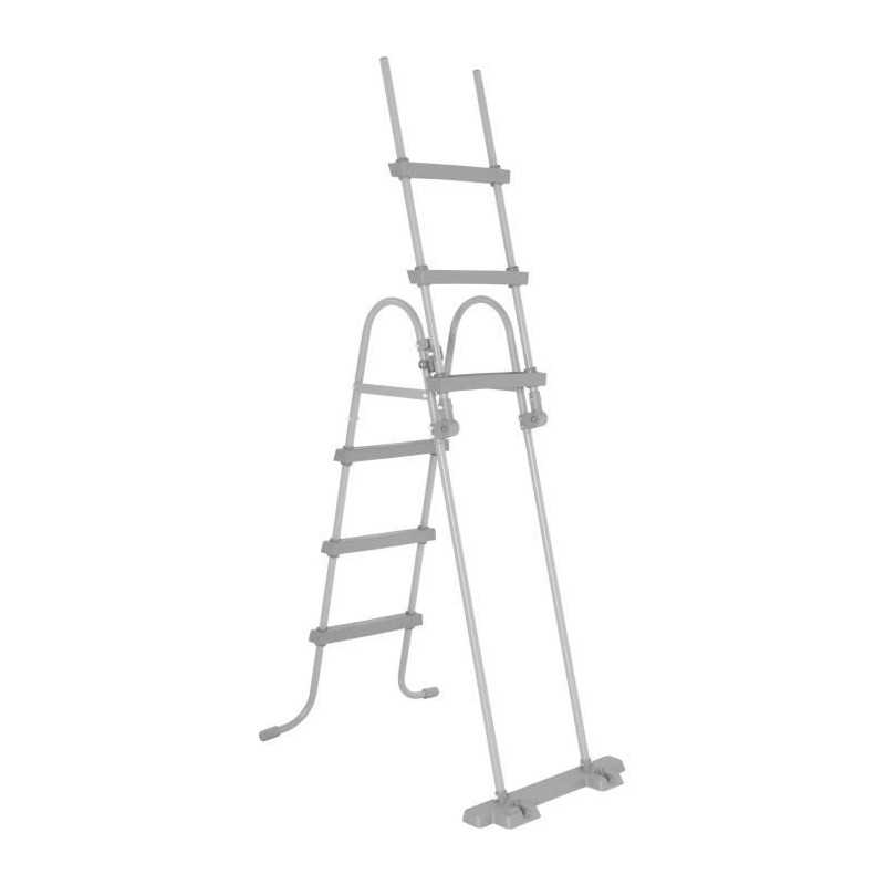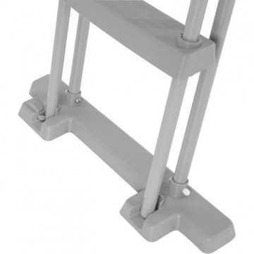 Echelle de sécurité 2 x 3 marches pour piscine hauteur 107 cm * Structure métallique résistante a la corrosion * Échelons en plastique tres résistant * Facile a monter * L'échelle extérieure peut etre repliée vers le haut pour éviter que les enfants entrent dans la piscine sans surveillance. Contenus : une échelle de piscine de sécurité
