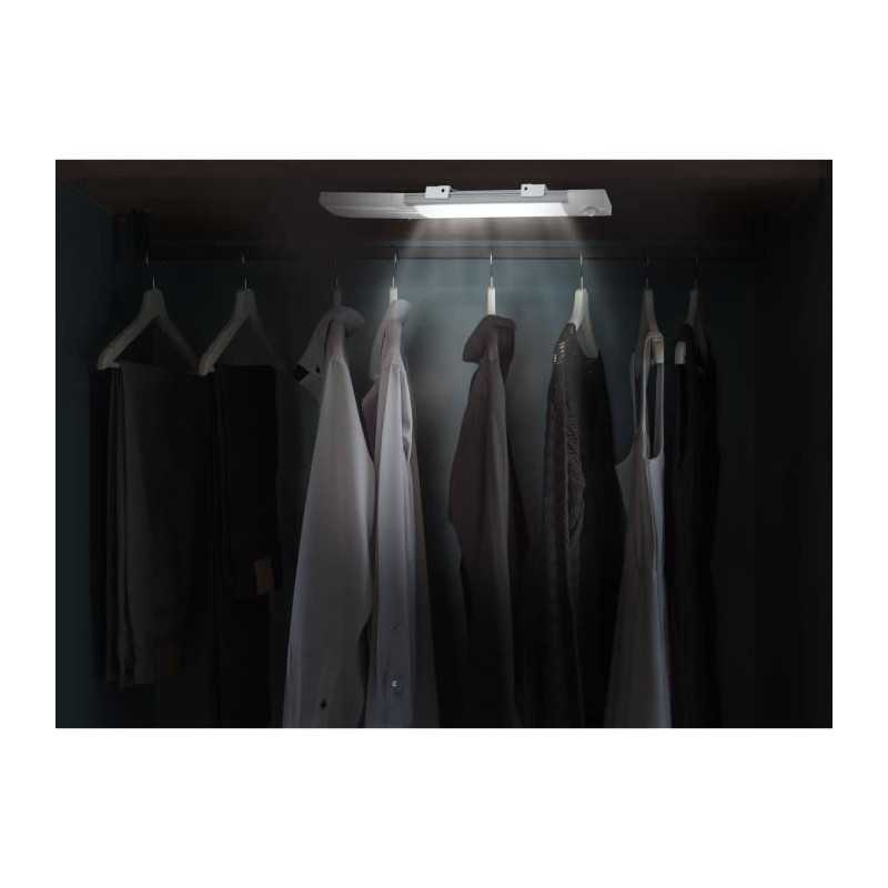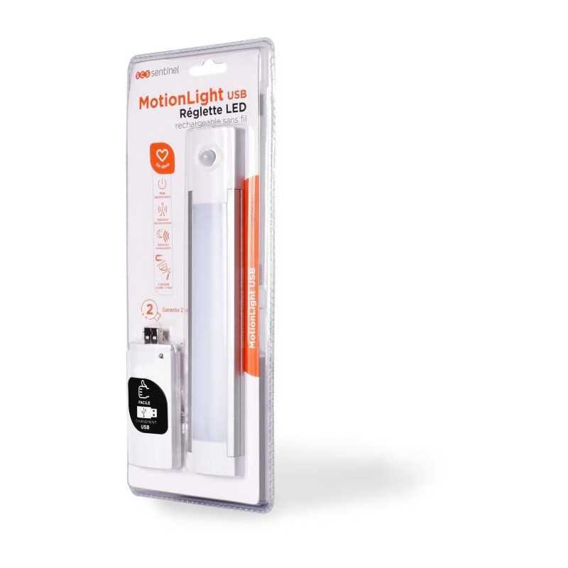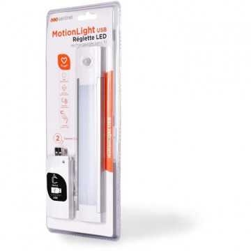 Réglette LED rechargeable sans fil - Détection de mouvement - Détection crépusculaire - Mode On/Off/Auto - Chargement USB - A aimanter, a coller ou a fixer (fixation adhésive et vis fournies) - 2 supports fournis au choix.