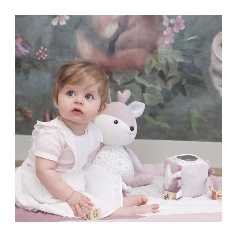 Votre princesse sera plongée dans une foret enchantée, en compagnie d'une adorable biche. Un univers aux couleurs lilas et raisin, tendres et poudrées. Des matieres a la douceur incroyable, sélectionnées pour leur confort. Bébé sera cajolé entre velours et jersey de coton pour de belles nuits.