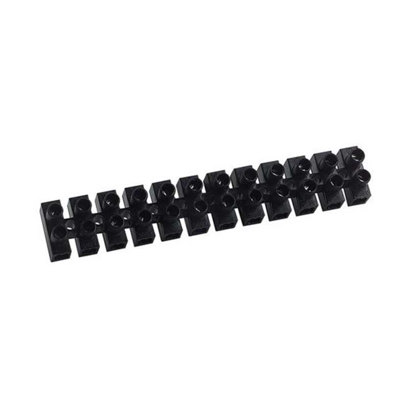 La barrette de connexion Nylbloc capacité 10 mm² noir est dotée de 12 paires de bornes, chacune avec des trous de 4,5 mm de diamètre. Elle peut supporter jusquà une tension de 400 V avec une intensité maximale de 57 A. Par ailleurs, elle est résistante et peut supporter un environnement jusquà 100 °C lors de son installation.