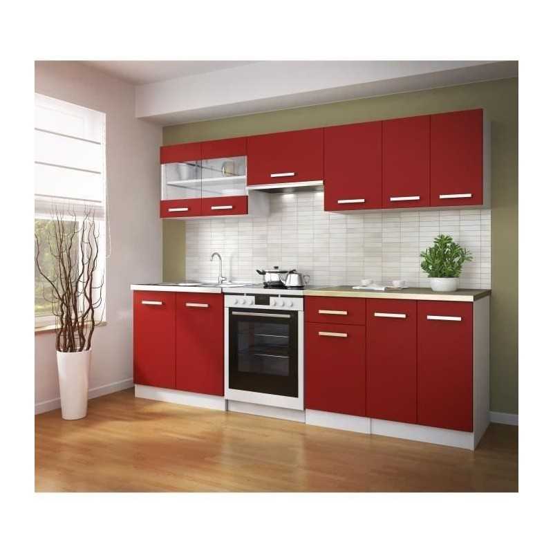 ULTRA Meuble haut de cuisine - Caissons et façades en panneaux de particules 16mm et recouverts de mélaminé rouge mat - Style et design contemporain - Chants en PVC 2mm - 2 portes battantes - 1 étagere - Poignées en plastique - Plan de travail 60cm avec décor HPL inclus - Fabrication européenne - Dimensions : L 60 x P 31 x H 55 cm.