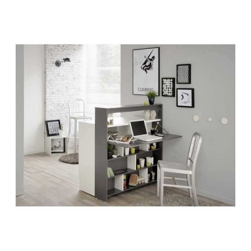 EKIPA Meubles multi fonction 2 portes + 1 tiroir - Gris ombre et Blanc - L 104 x P 59 x 115 cm - EKY
