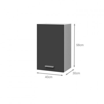 EXTRA - Meuble haut de cuisine 40cm, profondeur 30cm, une porte, coloris Gris Mat - Structure du caisson blanc mat - Façade de couleur finition Mat - Poignée design.