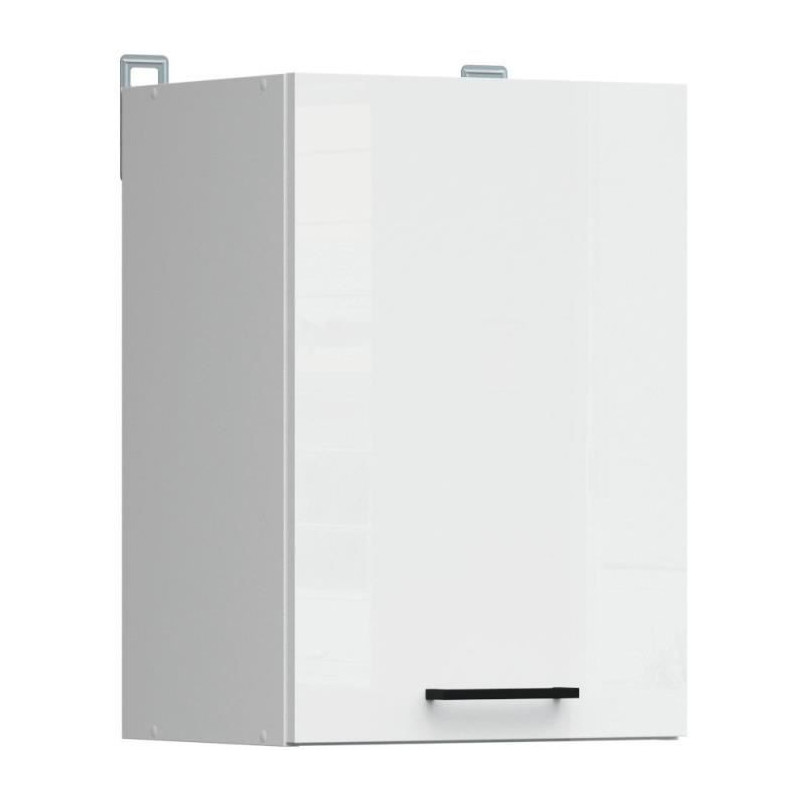 JUNONA Meuble haut de cuisine coloris blanc/blanc brillant - 1 porte battante - L 40 x H 57,3 x P 30 Poignées en plastique