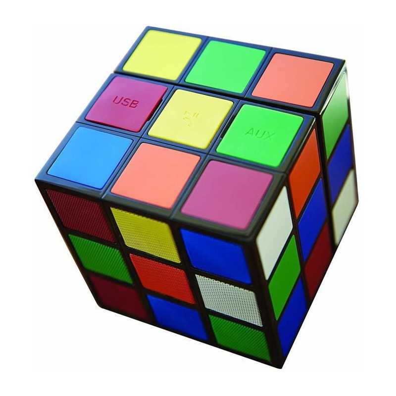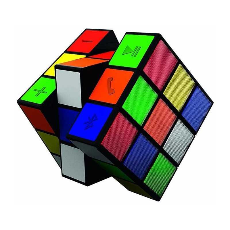 BIGBEN BT10RUBIKS Speaker Bluetooth - Portée jusqu'a 10 m - Charge via USB (câble inclus) - AUX IN 3.5 mm (câble non inclus) - Batterie Lithium rechargeable pour 8 heures d'écoute - Micro intégré avec annulation des bruits ambiants - Puissance musicale totale 9W - Décor rubiks