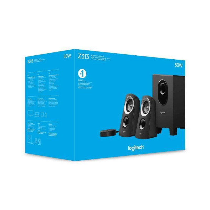 Le systeme de haut-parleurs Logitech® Speaker System Z313. Détendez-vous et savourez votre musique. Grâce a son boîtier de commande pratique, son subwoofer compact, le son ample qu'il diffuse et son installation aisée, le systeme de haut-parleurs vous apporte tout ce qui fait défaut au son intégré a votre ordinateur.