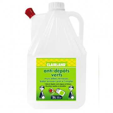 CLAIRLAND Anti-Dépôts verts terrasses, dallages et murs - Bidon arrosoir pret a l'emploi - 5 L