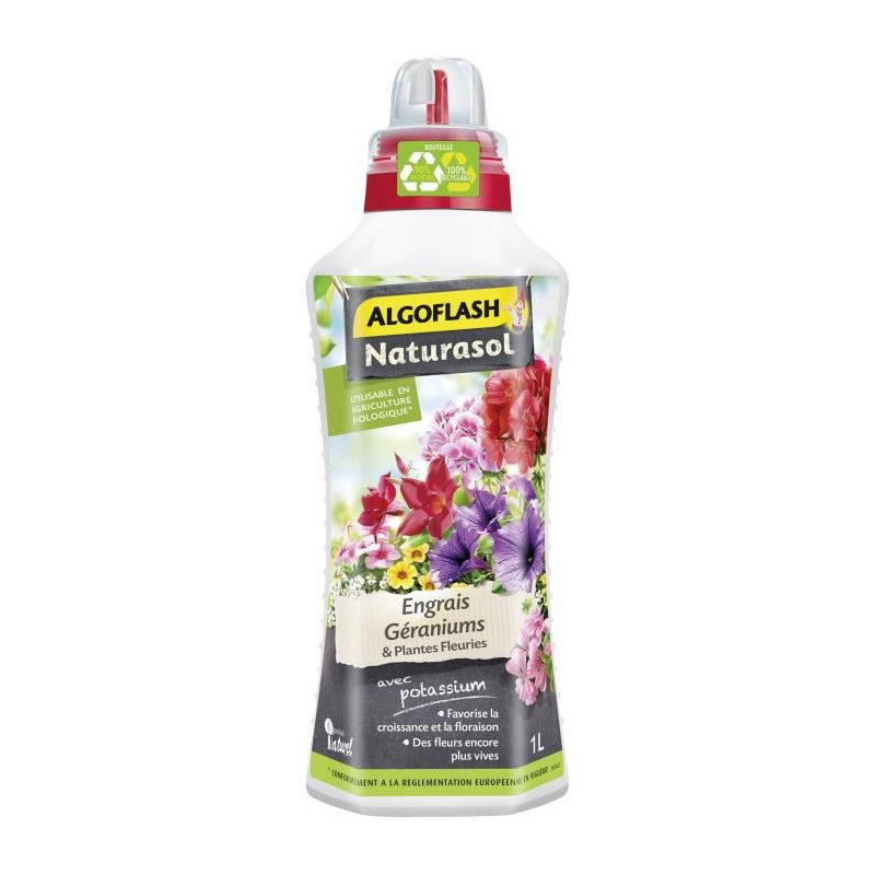 Engrais Liquide Géraniums et Plantes Fleuries - ALGOFLASH NATURASOL - 1 L