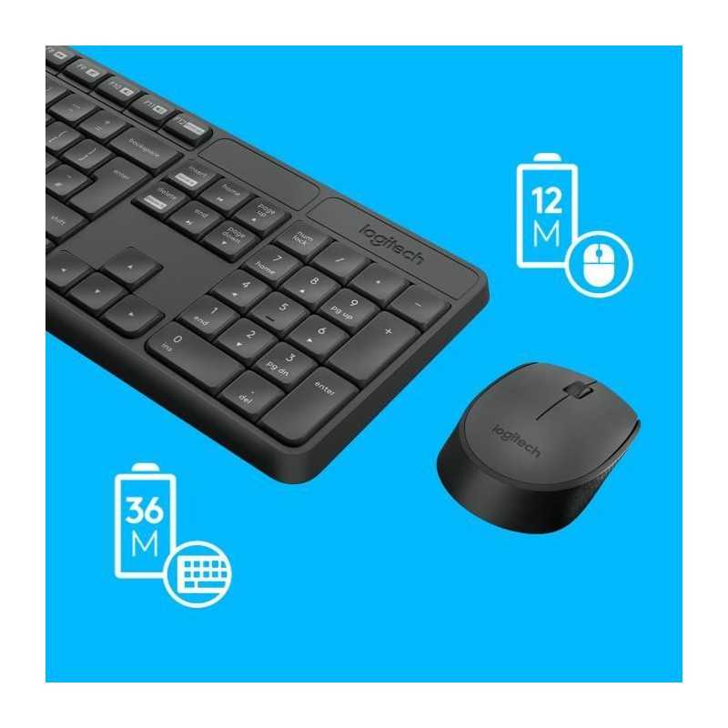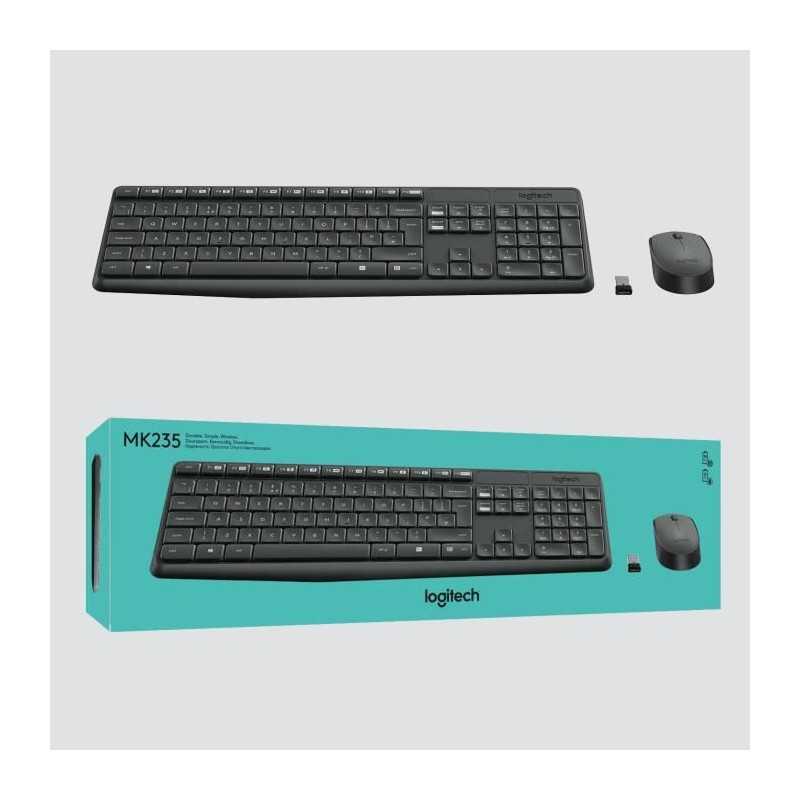 MK235. Un clavier et une souris simples, durables et de taille standard avec une longévité des piles étendue: 36 mois pour le clavier et 12 mois pour la souris.* * La longévité des piles et la portée sans fil sont susceptibles de varier en fonction de l'environnement et du mode d'utilisation.