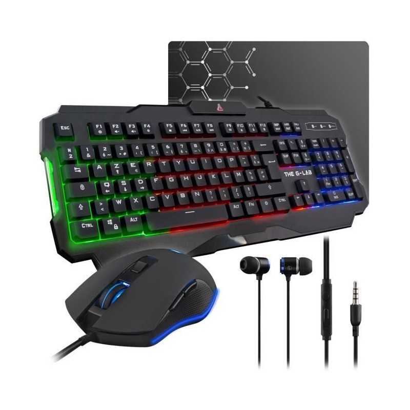 THE G-LAB COMBO HELIUM Clavier FR Rétroéclairé Performance + Souris Confort + Écouteurs Intra-Auriculaires + Tapis Antidérapant