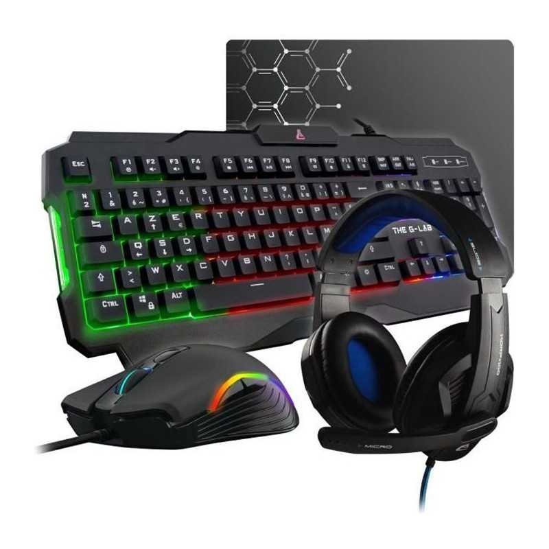 THE G-LAB Gaming Argon Combo Calvier + Souris et Tapis + Casque - KEYZ 120 FR, KULT 130, KORP 150, PAD - FR - Un parfait set up comprenant une souris rétroéclairée, un clavier rétroéclairé, un casque et un tapis de souris pour entrer dans l'arene ! Libérez votre potentiel !
