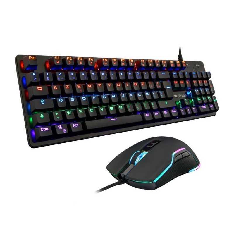 THE G-LAB - Combo CARBON - Pack Clavier et Souris Gamer RGB Filaire - Clavier Gaming Mécanique Rétro-Éclairage LED - Switch Bleu - AZERTY Français - Anti-Ghosting + Souris Gaming RGB 6 Boutons 7200 DPI