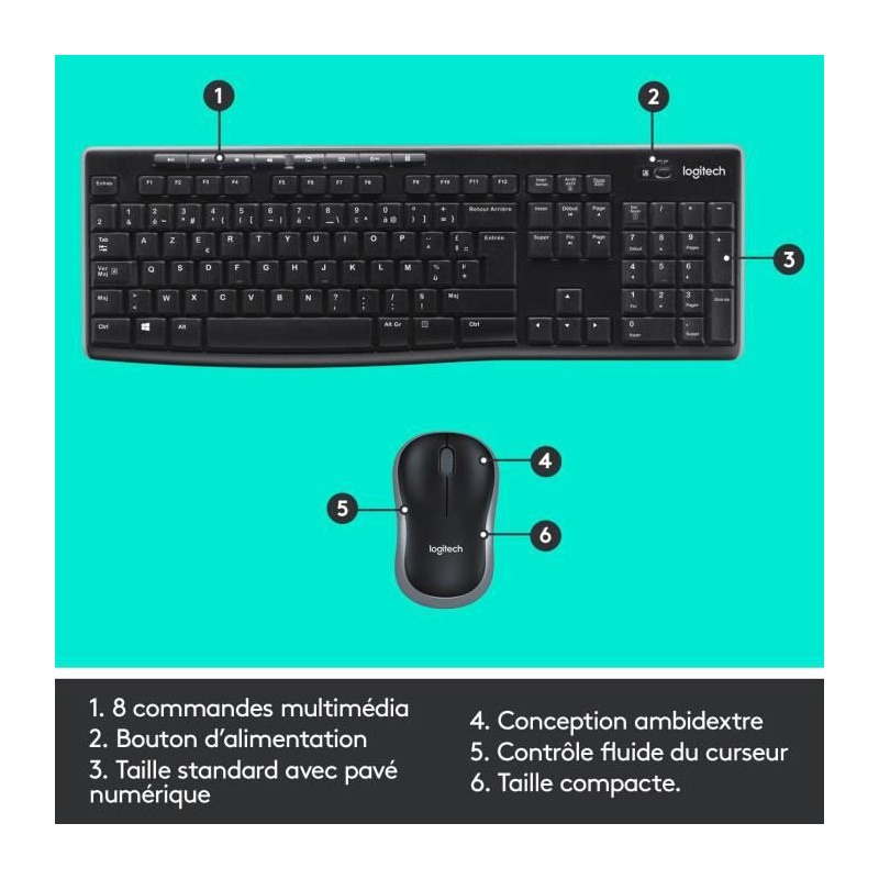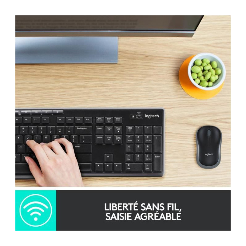 MK270. Ensemble sans fil de pointe avec nano-récepteur Logitech ultra discret. Bénéficiez a la fois de la fiabilité d'un dispositif filaire et de la commodité du mode sans fil jusqu'a 10 metres grâce a la connectivité sans fil 2,4 Ghz avancée de Logitech, et ce meme dans les environnements les plus fréquentés.