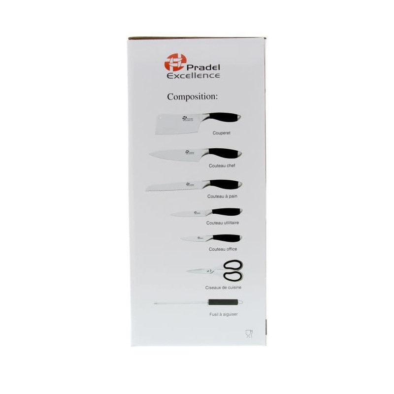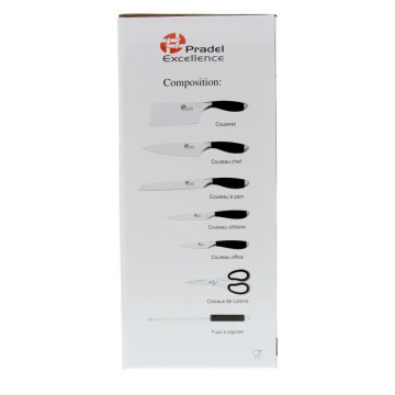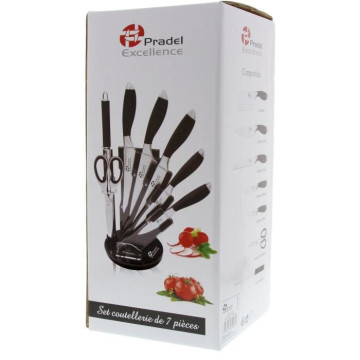 PRADEL EXCELLENCE Bloc tournant de 5 couteaux de cuisine + fusil et ciseau I7408N 2,5-8,5-11-20cm noir