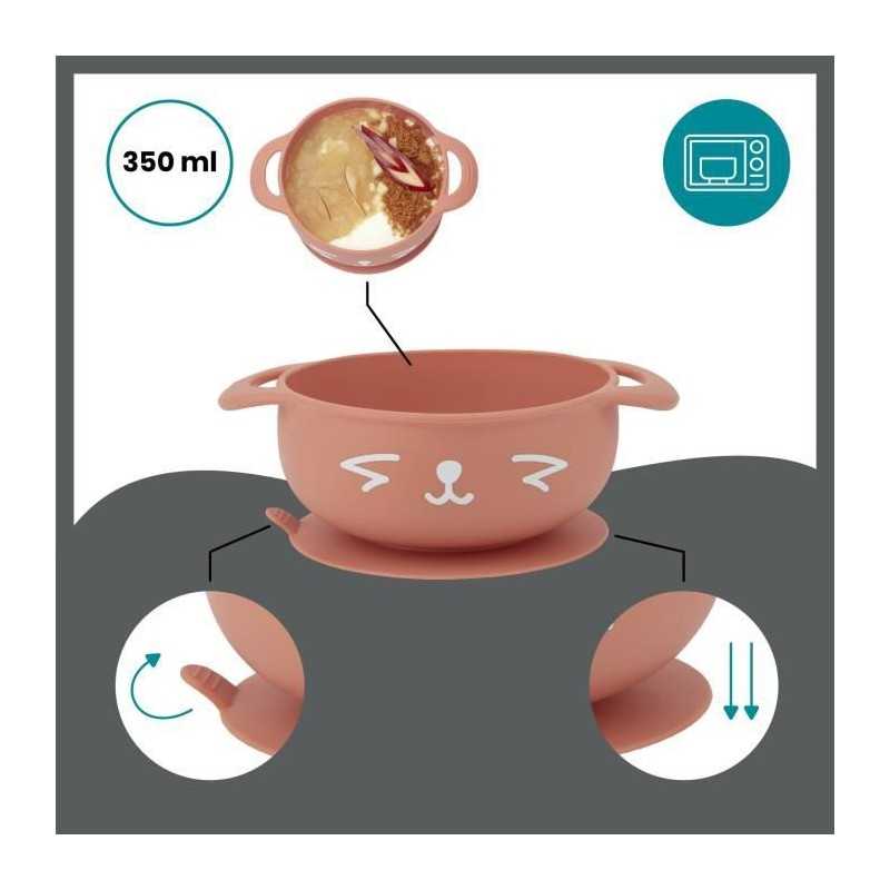 Contient 1 bol et 1 cuillere - Aide au développement de la motricité fine - Favorise le développement de l'autonomie - Bol antidérapant grâce a sa ventouse - Cuillere douce et souple pour les gencives sensibles de votre bébé - Passent au lave-vaisselle - Le bol passe au four et au lave-vaisselle - 100% silicone