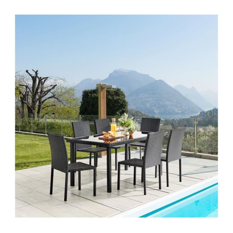 Vous recherchez du mobilier de jardin pour aménager votre espace extérieur? Cet ensemble repas de jardin conçu en résine tressée dispose d'un design sobre et élégant pour aménager votre terrasse, jardin ou patio. Ce mobilier de jardin permet d'accueillir jusqu'a 6 personnes pour des moments conviviaux entre amis ou en famille. Vous aurez un lieu privilégié pour partager des moments de détente.