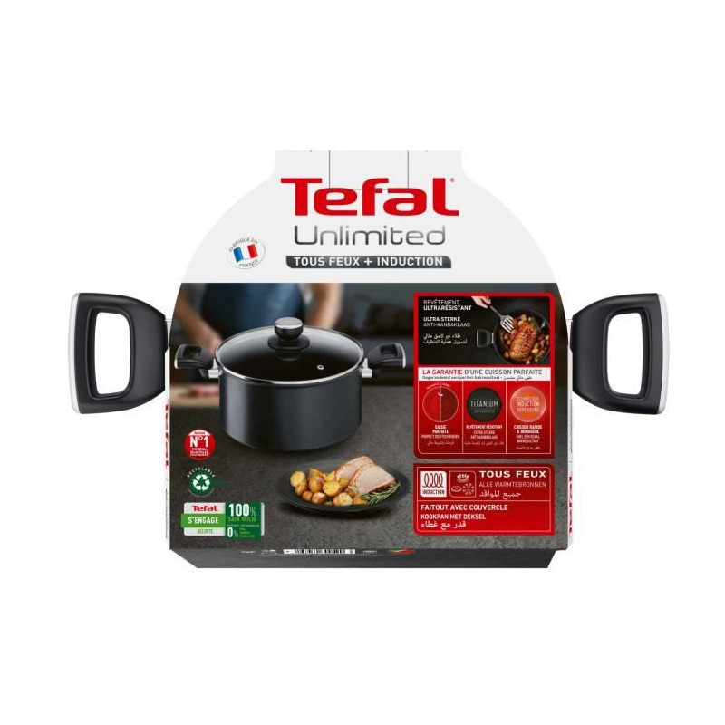 TEFAL G2554602 UNLIMITED Faitout 24 cm (5 L) + couvercle verre