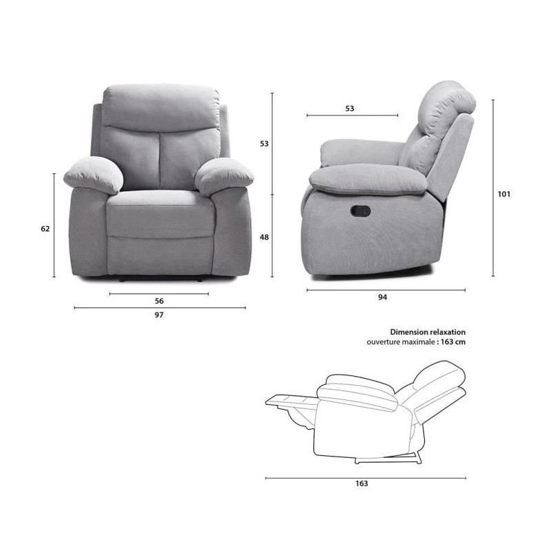 Fauteuil relax électrique - ALBANY - Tissu gris clair - L...