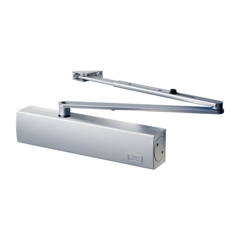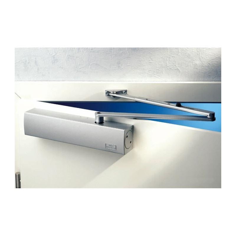 Ferme-porte pour 6 forces (de 1 a 6 selon DIN EN 1154), pour des largeurs de porte de 75, 85, 95, 110, 125 et 140 cm, réglage de la force et de la vitesse de fermeture ainsi que de l'amortissement, contrôle aisé du réglage de la force de fermeture grâce a un lecteur optique, montage simple et pratique, A-coup final réglable par le bras, agréé pour porte coupe-feu, (avec plaque de fixation TBZ 4035), 60x288x47 mm