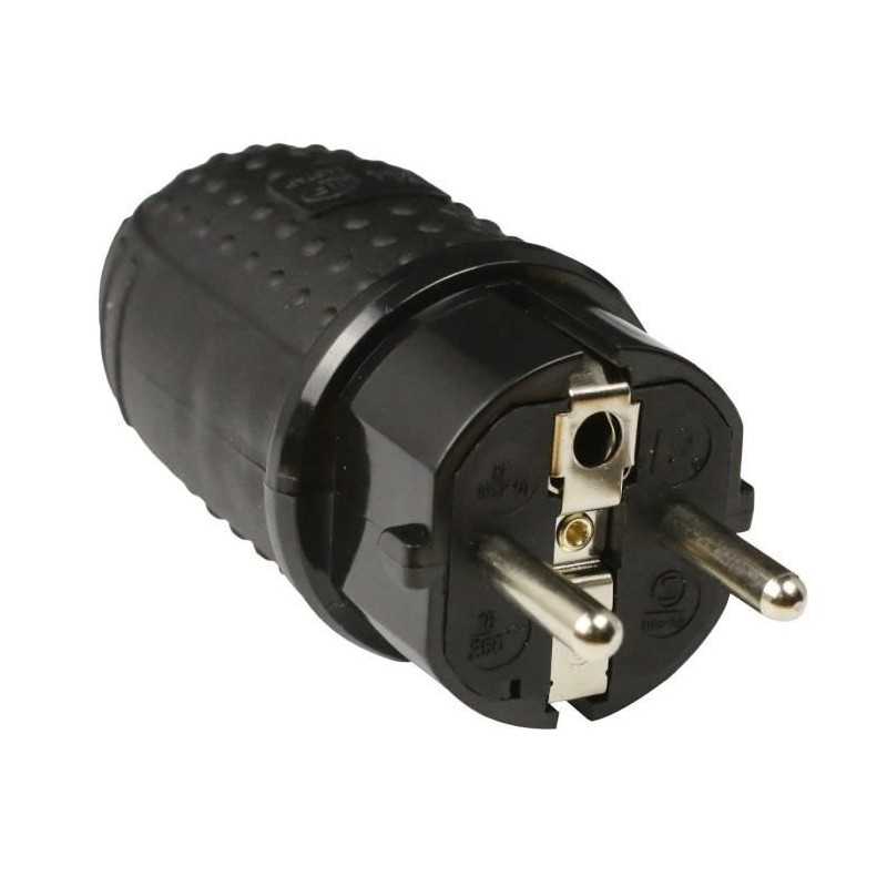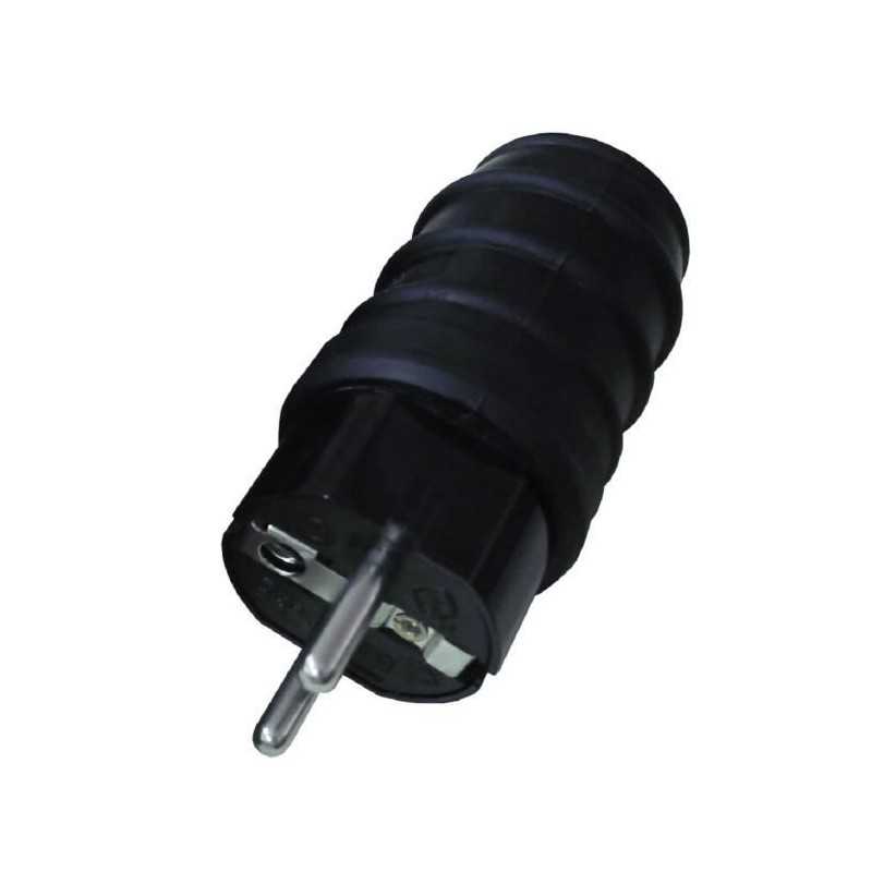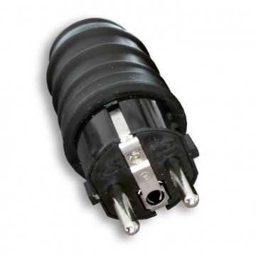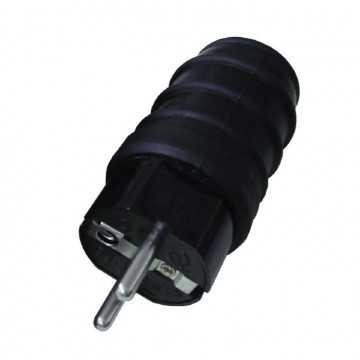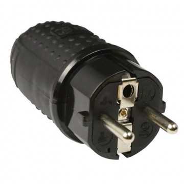 Fiche électrique mâle étanche IP44 - 2P+T 16A - Coloris : noir - Matiere : caoutchouc - Norme NF.