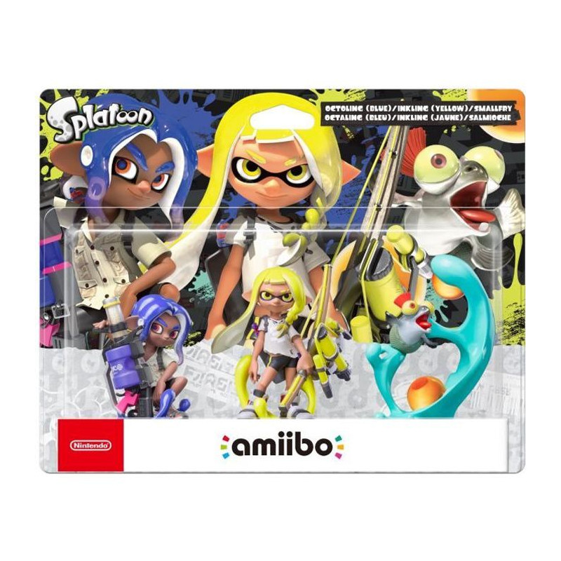 Pack Amiibo Splatoon 3 - Octaling (Bleu) + Inkling (Jaune) + Salmioche - Collection Splatoon