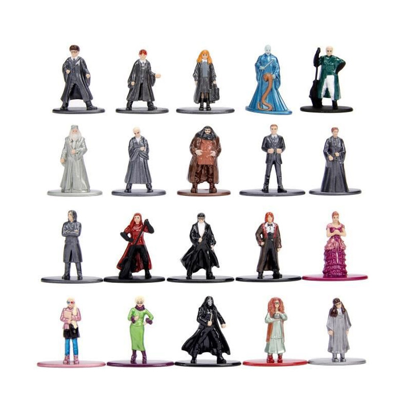 20 figurines des personnages de la saga : Severus Rogue, Albus Dumbledore, Alastor Maugrey, Sirius Black, Hermione Granger, Dolores Ombrage, Harry Potter (x2), Bellatrix Lestrange, Luna Lovegood, Argus Rusard, Nick Quasi-sans-tete, Ron Wesley, Drago Malfoy, Voldemort, Remus Lupin et Nymphadora Tonks.