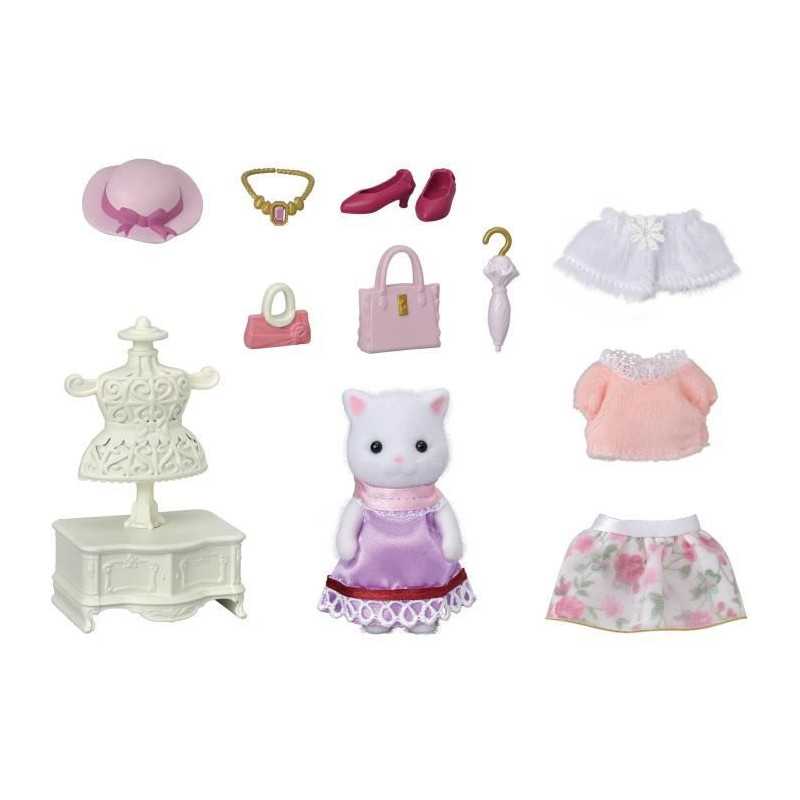 La valisette de mode contient de nombreux vetements, sacs, chaussures et accessoires pour habiller les Sylvanian Families. Amusez-vous a créer différentes tenues en combinant les vetement et accessoires. Contient une figurine d'Alicia, la grande soeur chat persan.