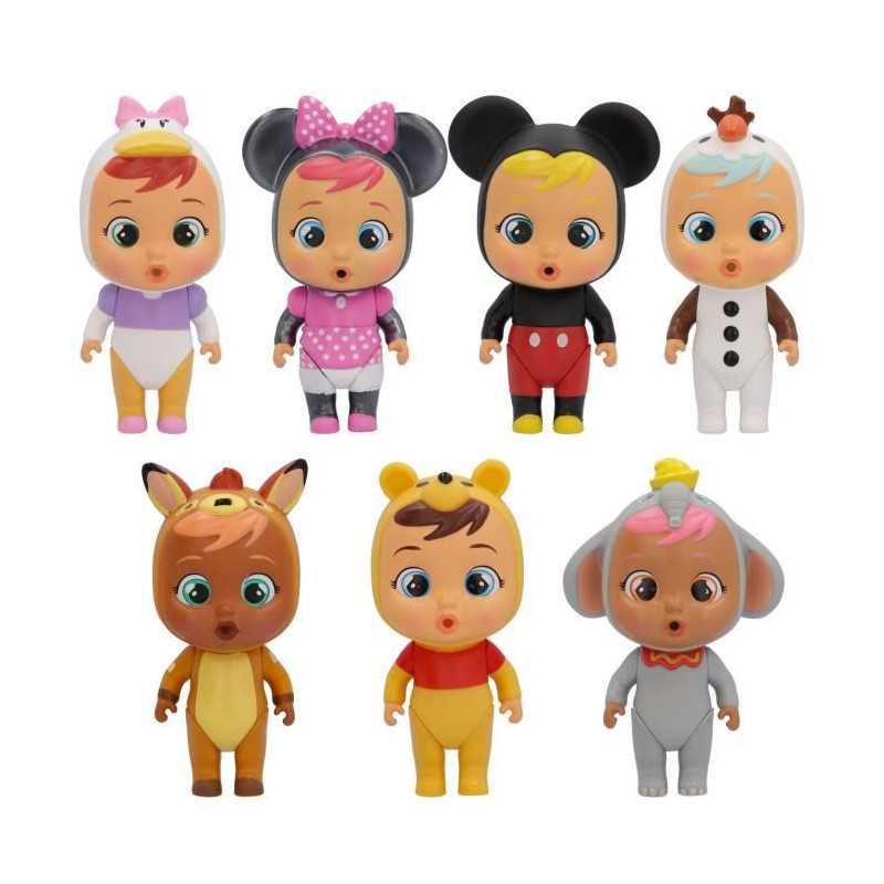 Capsule surprise CBMT-Disney qui cache des mini poupées inspirées des personnages emblématiques Disney et leurs accessoires a collectionner. Elles pleurent de vraies larmes lorsqu'on leur appuie sur le ventre. 7 personnages a collectionner : Dumbo, Minnie, Mickey, Daisy, Olaf, Bambi, Winnie.
