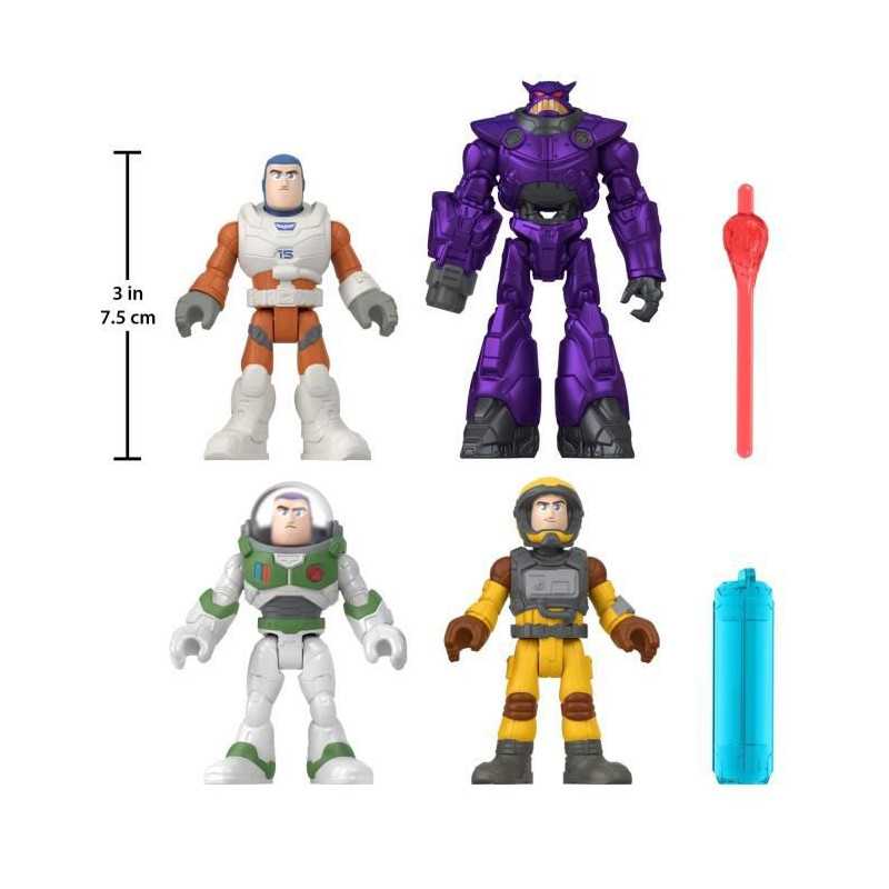 Les fans du film Buzz l'Éclair de Disney Pixar vont pouvoir revivre les incroyables aventures spatiales de l'oeuvre avec ce coffret de figurines Imaginext® de Fisher-Price®. Les Rangers de l'Espace en herbe peuvent aider Buzz l'Éclair a vaincre l'infâme Zurg, tout comme dans le film ! Ce coffret contient 4 figurines articulées : Zurg, Buzz l'Éclair (Ranger de l'Espace Alpha), Buzz l'Éclair (XL-12) et Buzz l'Éclair (XL
