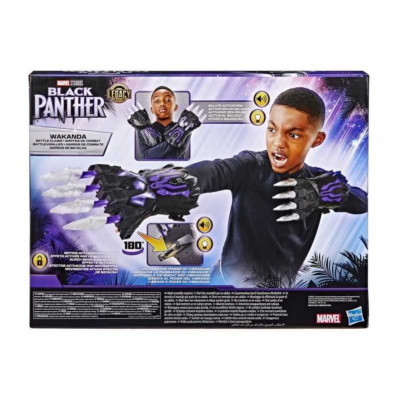 Les enfants peuvent se déguiser comme Black Panther et imaginer sauver le monde contre les ennemis du Wakanda ! Ils peuvent équiper les Griffes de combat Black Panther Legacy et se préparer pour l'action en faisant le salut wakandais pour activer les griffes de la main gauche, ainsi que sons et lumieres. Les jouets Black Panther sont des cadeaux géniaux pour les filles et les garçons, a partir de 5 ans.