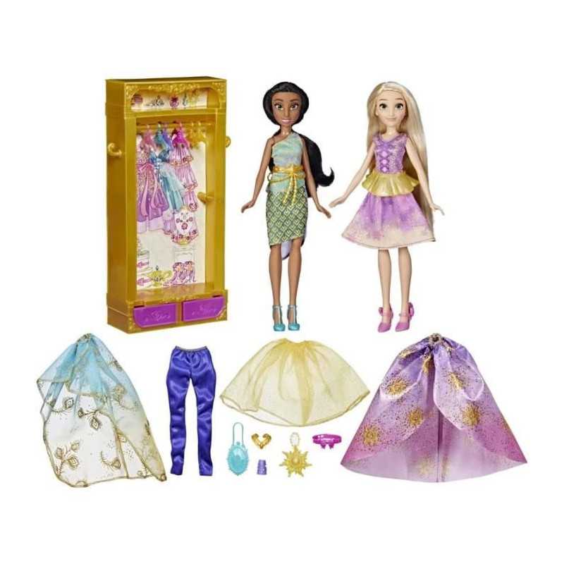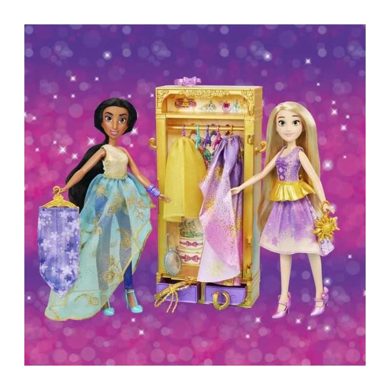 Disney Princesses Le dressing de Jasmine et Raiponce, armoire avec tenues pour poupées, jouet pour enfants, des 3 ans