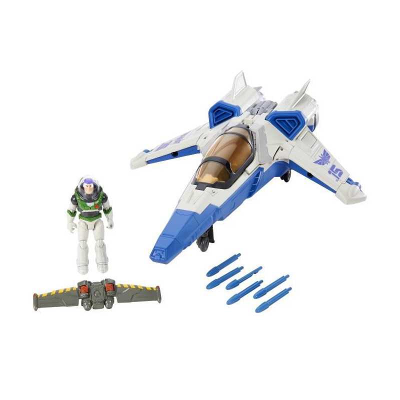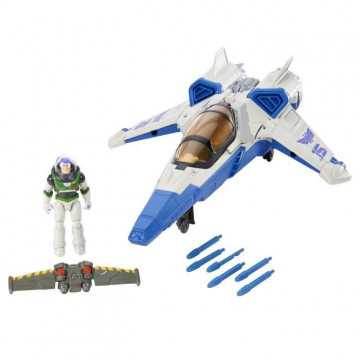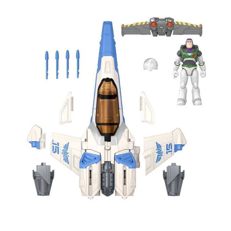 Doté de lance-projectiles, le toit du cockpit s'ouvre, la figurine Buzz l'Éclair est éjectée et les ailes de son jetpack se déploient pour l'envoyer combattre son ennemi Zurg. Figurine incluse. Dim : L50 x l35cm