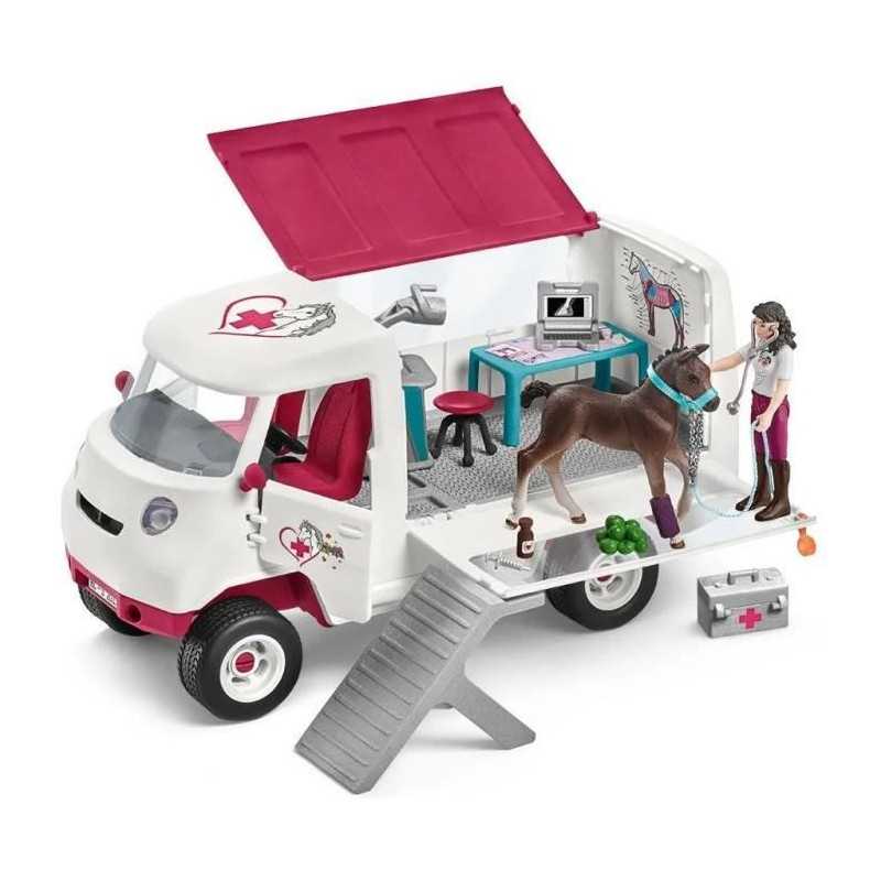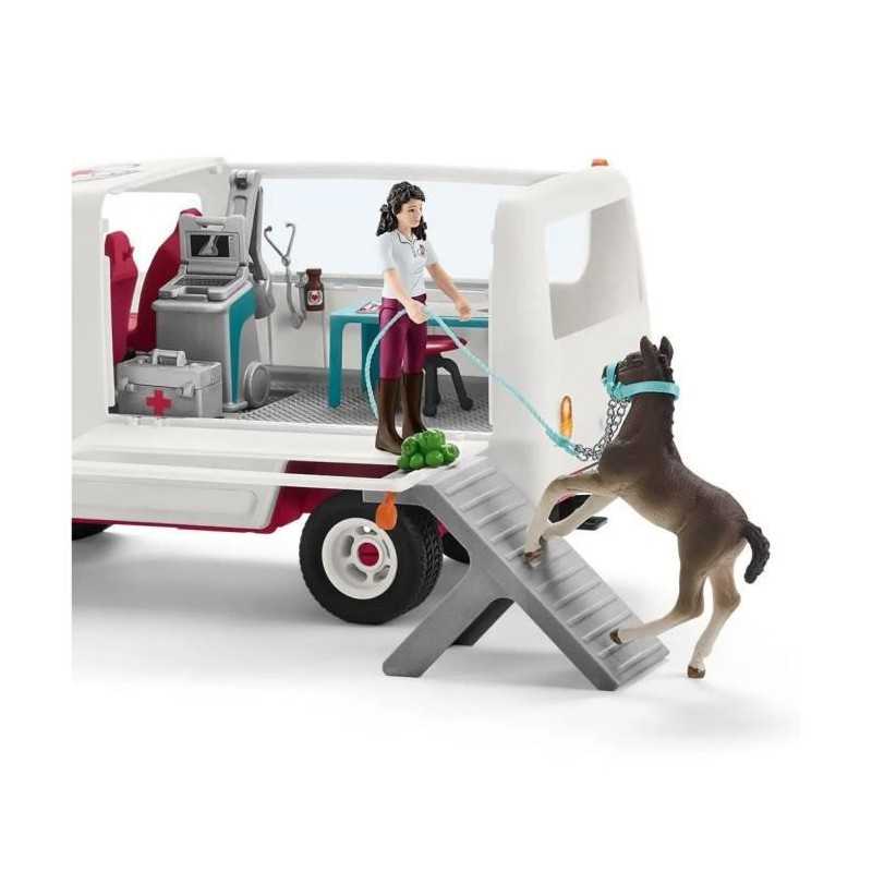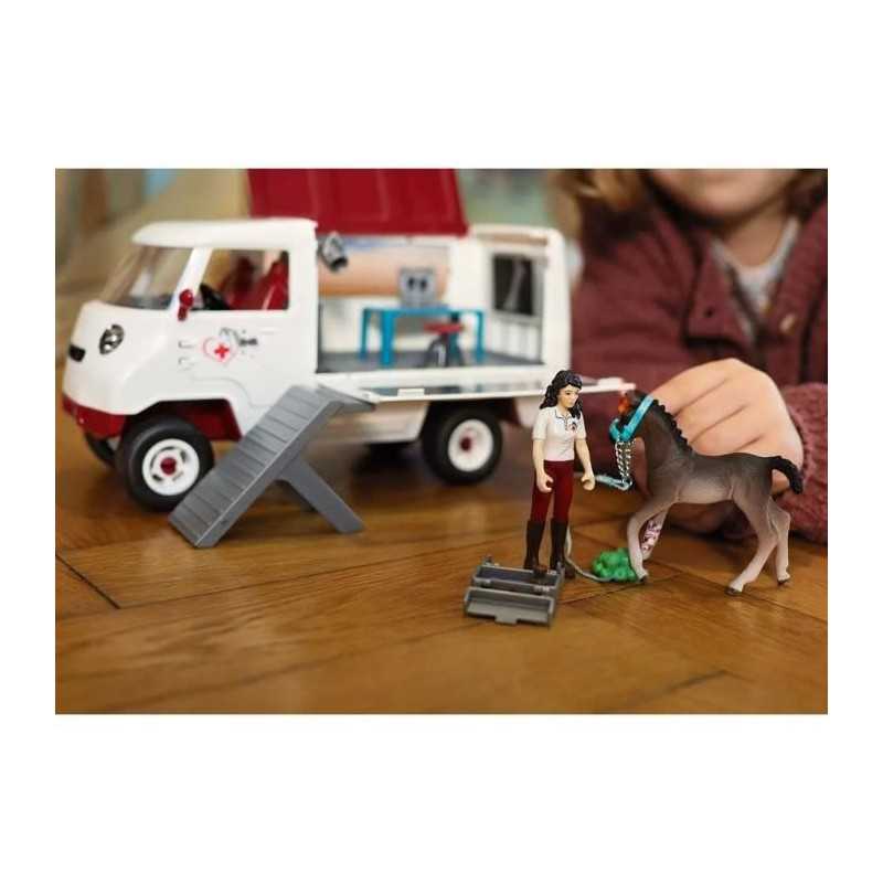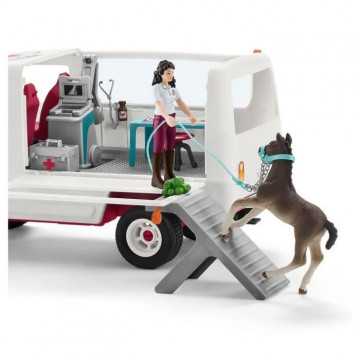 Ce magnifique ensemble Schleich "Vétérinaire mobile avec poulain Hanovrien" de la gamme Horse Club est un excellent moyen pour les enfants de s'amuser et d'imaginer des histoires. Le set comprend une figurine vétérinaire, un poulain Hanovrien, un van et plusieurs accessoires. La figurine vétérinaire est habillée d'une tenue professionnelle et porte un sac à dos rempli d'outils pour soigner le poulain. Le van est équipé d'un toit ouvrant et comprend une table, une chaise et des outils supplémentaires. Les accessoires incluent une bouteille, une seringue, un thermomètre et plus encore. Ce set offre aux enfants des heures de jeu créatif et imaginatif.
