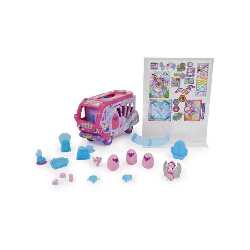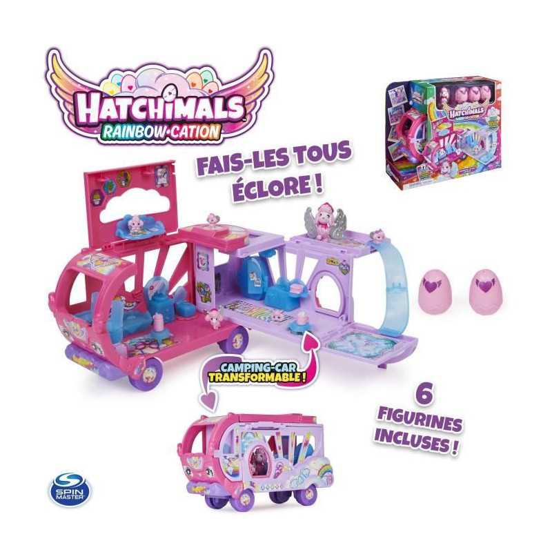 Le camping-car des Hatchimals se tranforme en véritable univers de jeu. 6 figurines Hatchimals fournies dont 3 oeufs a faire éclore, 10 accessoires et des autocollants. Des 5 ans.