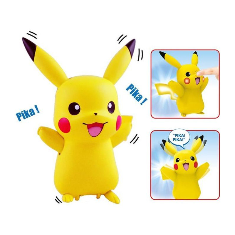 Incroyable, Pikachu prend vie a votre contact... Touchez la tete et le nez de Pikachu afin qu'il active ses fonctions. Il parle, bouge ses bras et ses oreilles, sa queue et ses joues s'illuminent ! Un vrai compagnon interactif a emporter partout ! Fonctionne avec 3 piles AG13 (incluses).