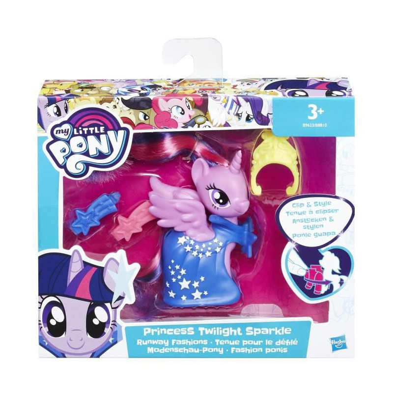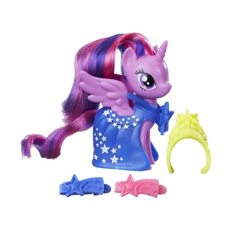 MY LITTLE PONY - Twilight Sparkle et ses amies adorent leurs robes de gala qu'on enleve grâce au clip sur le devant! 1 tenue et 3 accessoires inclus. Existe en version Fluttershy, Rainbow Dash et Twilight Sparkle. Poneys compatibles avec la Boutique Magique. Fille - Des 3 ans - Livré a l'unité