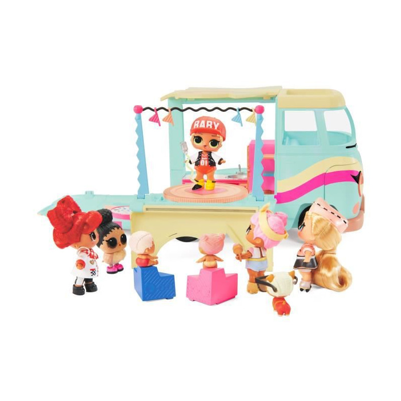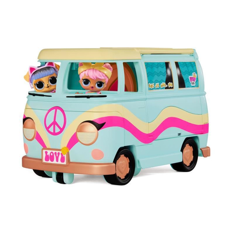 Avec le Grill & Groove Camper, nos poupées LOL Surprise vont pouvoir voyager avec style. Une fois ouvert, découvre une scene pour danser et chanter, une cuisine pour préparer de bons petits plats et pleins d'autres surprises ! Convient aux poupées LOL Surprise (7.5 cm). Poupée non incluse.