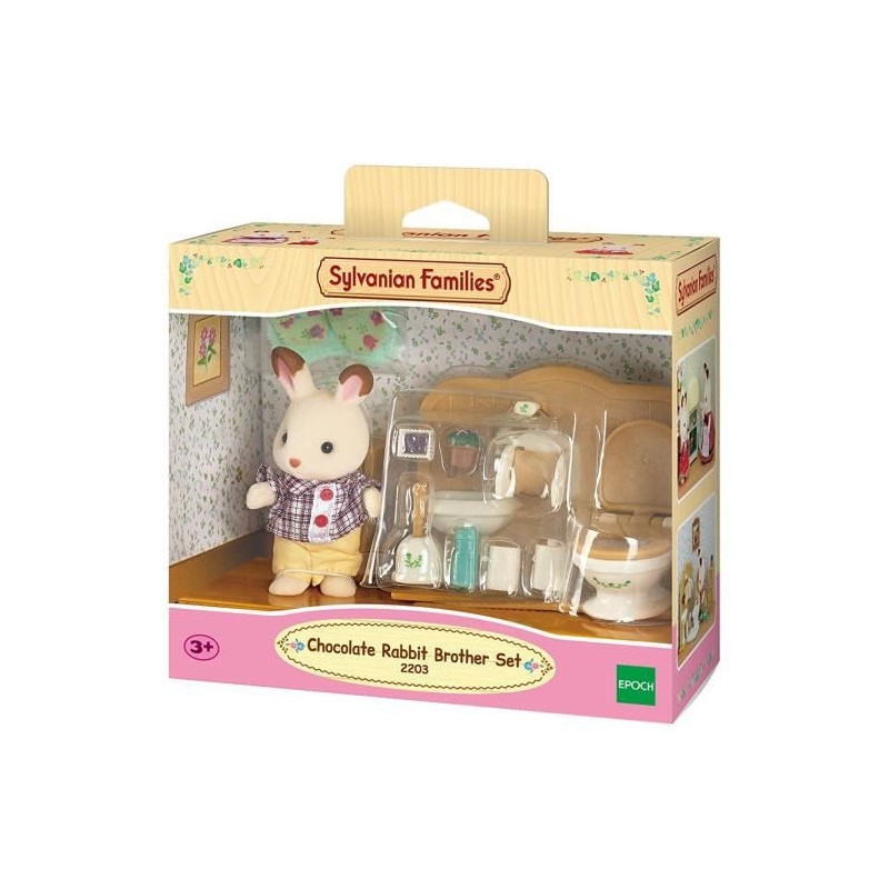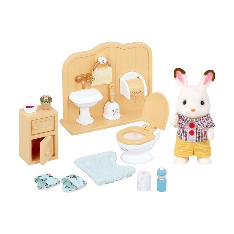 Sylvanian Families - Ce set contient des accessoires tres détaillés et une figurine. Tout est réuni pour raconter des histoires. Les toilettes de la maison Sylvanian, permettent d'aménager un interieur confortable. Inclus 1 figurine Garçon Lapin Chocolat et 16 accessoires - Mixte - A partir de 3 ans - Livré a l'unité