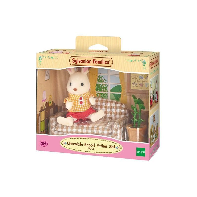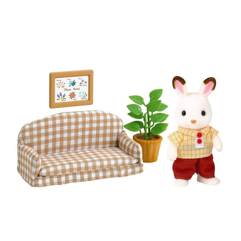 Sylvanian - Idéal pour recevoir des amis. Un canapé confortable et 1 figurine sylvanian et quelques accessoires de décoration pour créer un univers confortable. incluses, papa lapin chocolat + 3 accessoires : 1 canapé, 1 plante verte, 1 tableau - Fille - A partir de 4 ans - Livré a l'unité