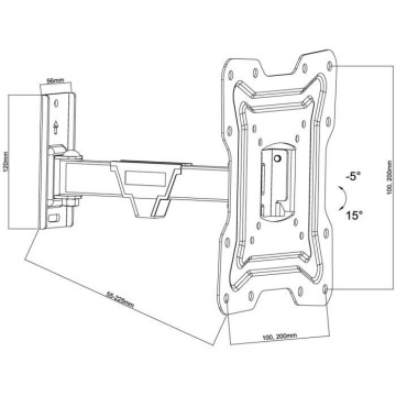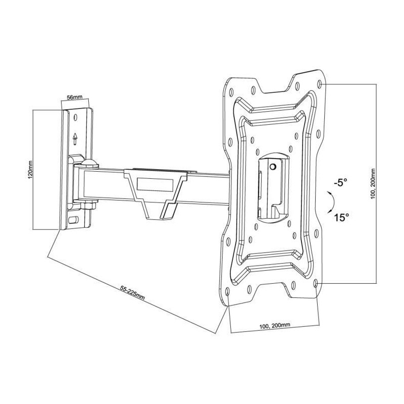 Support TV mural orientable pour écrans plats de 14" a 42" (35 cm a 107 cm) - Charge max supportée : 25 kg - Vesa max. : 200 x 200 - Distance au mur : mini. 55 mm / maxi. 225 mm - Inclinaison écran : -5°/+15° - Orientation écran : 180° / 180°