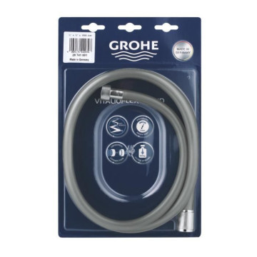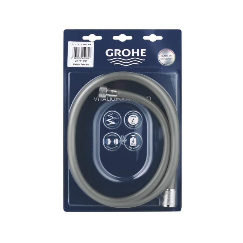 1500 mm - Surface lisse pour un nettoyage facile Résistance aux torsions jusqu'a 500N - Résistance a la pression jusqu'a 5 bars Résistance a la chaleur 70°C - Anti-pliures résistant aux pliures Connexion universelle G 1/2" x 1/2" - GROHE StarLight Chrome éclatant et durable