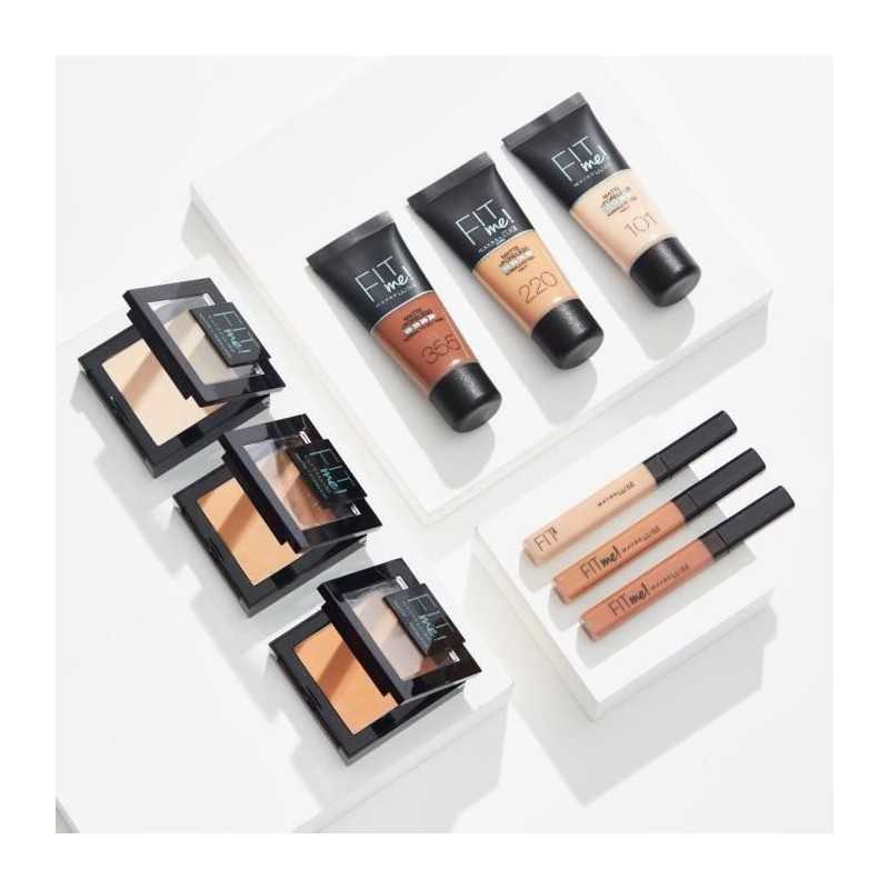 Maybelline Fit Me Poudre Compacte s'adapte au teint et a la texture de votre peau. Sa formule permet de dissimuler les pores et d'absorber l'exces de sébum. Pendant 16 heures votre peau est matifiée et unifiée. Idéale pour les peaux normales a grasses.