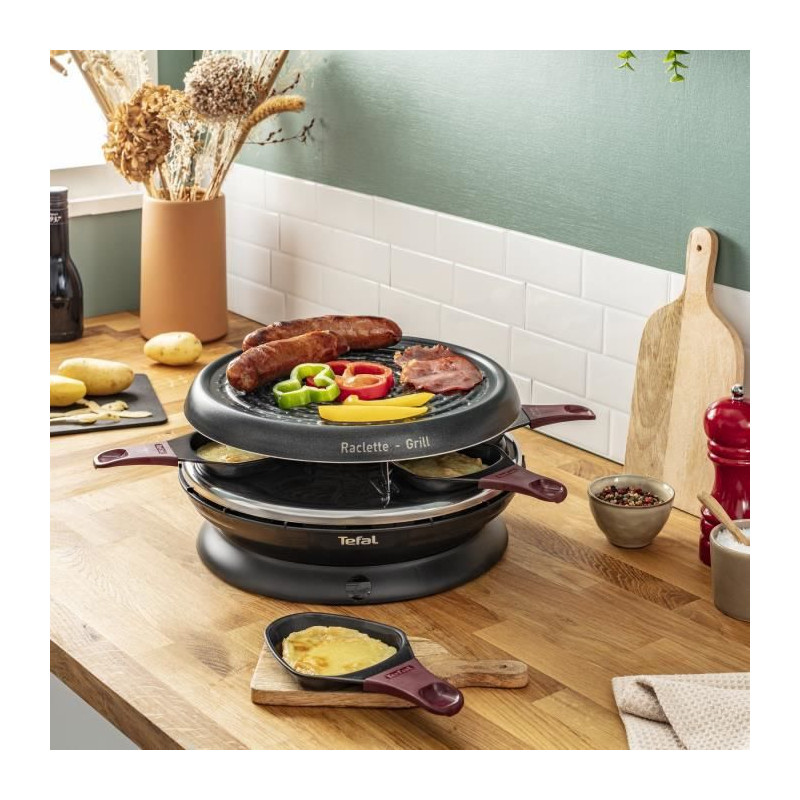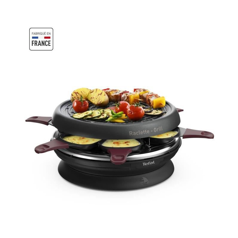 Appareil a raclette, Plaque grill, 850 W, 6 coupelles, Revetement antiadhésif, Rangement intégré, Fabriqué en France