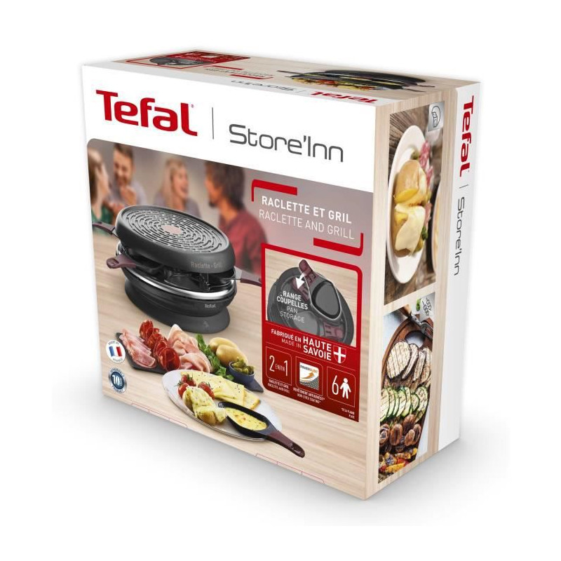TEFAL RE1820112 Store'Inn Appareil a raclette, 6 coupelles, Revetement antiadhésif, Rangement intégré, Fabriqué en France
