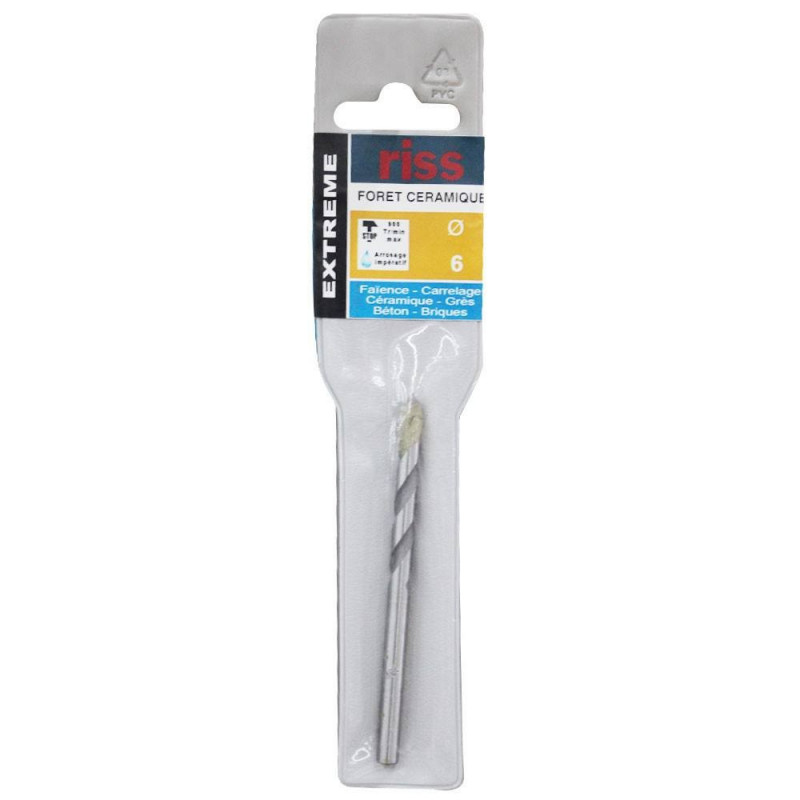Ce forêt céramique Ø 6mm est spécialement conçu pour vous permettre de percer des supports très durs comme le carregale, le marbre, la brique et le verre. Différent des forêts classiques, il se démarque par son cylindre à la plage de la tige. De la céramique et du diamant sont aussi ajoutés à la composition de ce forêt céramique Ø 6mm pour lui apporter une grande rigidité et une rapidité de perçage. Ce dispositif dispose d'une longueur de 65 mm pour un diamètre de perçage de 6 mm. Afin de percer dans les bonnes conditions, il est recommandé de toujours arroser le support lors du perçage.