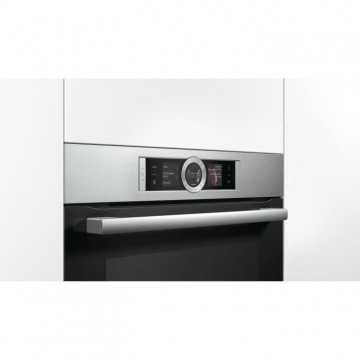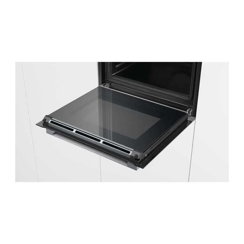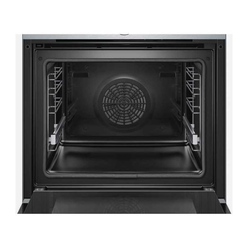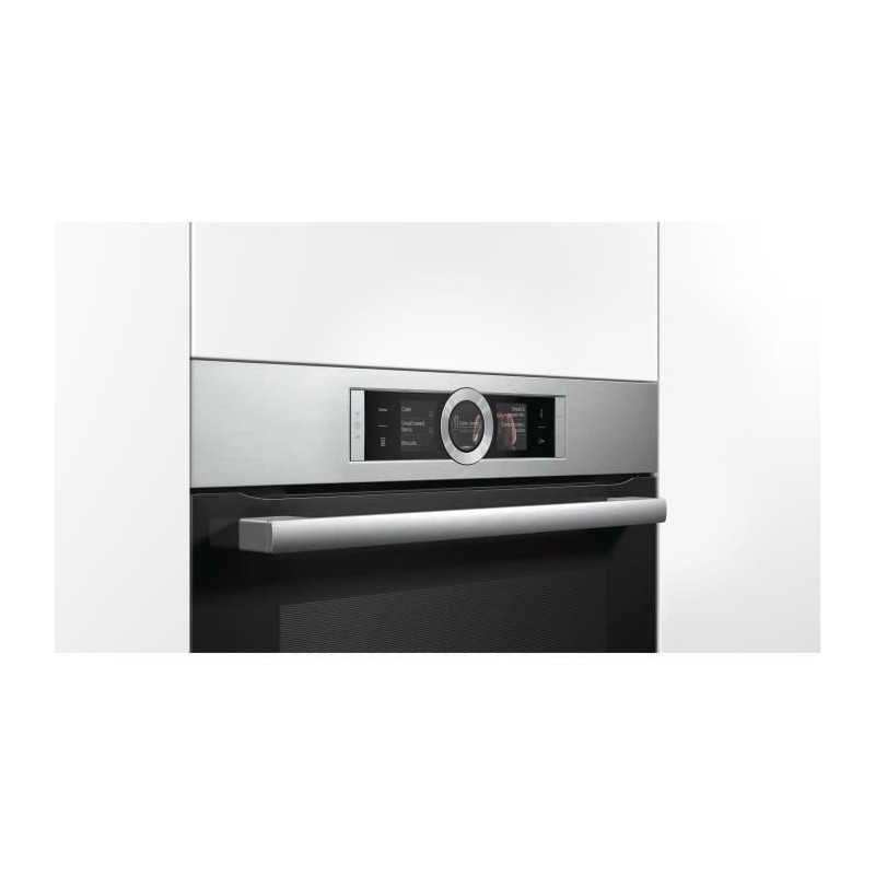 Electrique encastrable-71 L-Pyrolyse-A+-Inox-Porte froide 4 vitres-Ecran TFT couleur sensitif-Anneau de contrôle intuitif-Intérieur de porte plein verre-13 modes de cuisson-Préconisation de température-Affichage de la température-Fonction Sabbat-Rail télescopique 1 niveau-Préchauffage Booster