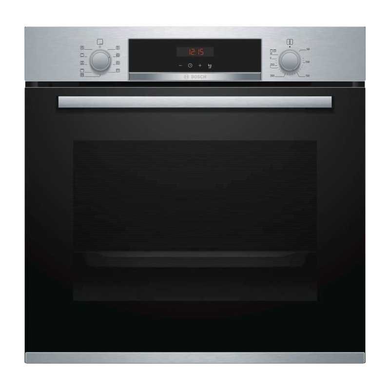 Electrique encastrable-Air pulsé 3D+-71L-Pyrolyse-A-Inox-5 modes de cuisson-Porte froide 4 vitres-Horloge électronique-Ecran LED-Halogene-Départ auto-Contrôle optique de la montée en température-10 programmes auto-Préchauffage Booster-Verrou de porte électronique-Sécurité enfants-Ventilateur de refroidissement