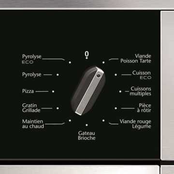 Four encastrable - Volume : 54L - Multifonction + - Nettoyage pyrolytique - Classe énergétique : A - Préconisation de la température - Porte froide - Eclairage - Tourne broche - Puissance : 3385W - Coloris : inox ** PRODUIT PLUS RESPONSABLE - MADE IN FRANCE ** Ce produit répond aux exigences du programme Made In France de Cdiscount : plus de 50% du prix de revient unitaire du produit est acquis en France. Un vérita