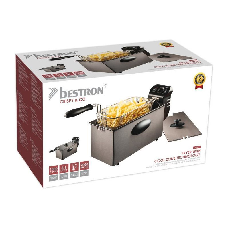 Bestron Friteuse a huile avec technologie zone froide, 3,5 litres, Avec régulateur de température, 2000 Watts, Couleur: anthra