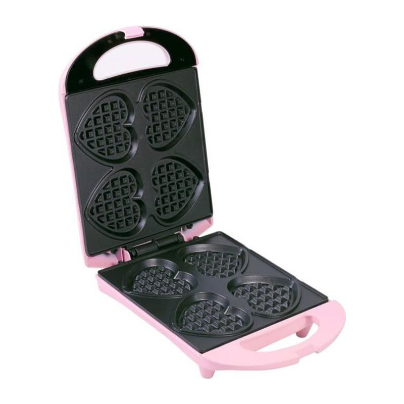 Gaufrier tendance avec bâtonnets pour savourer 4 petites gaufres en forme de coeur piquées sur bâtonnet - Idéal pour des moments de partage en cuisineAvantages du revetement antiadhésif : cuisson sans brûlures ni adhésion, ingrédients faciles a retirer, nettoyage facilitéFonctionnement sécurisée : poignées thermo-isolées et boîtier tres résistant a la chaleur avec clip de fermeture sur le couverc